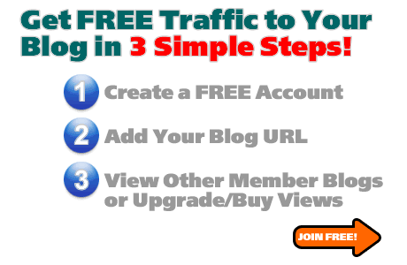 Don't Wait! Get more blog traffic to your blog FREE today! Watch that blog traffic grow as you earn a percentage of every credit your downline earns up to 5 levels deep! Click here to open a FREE account!